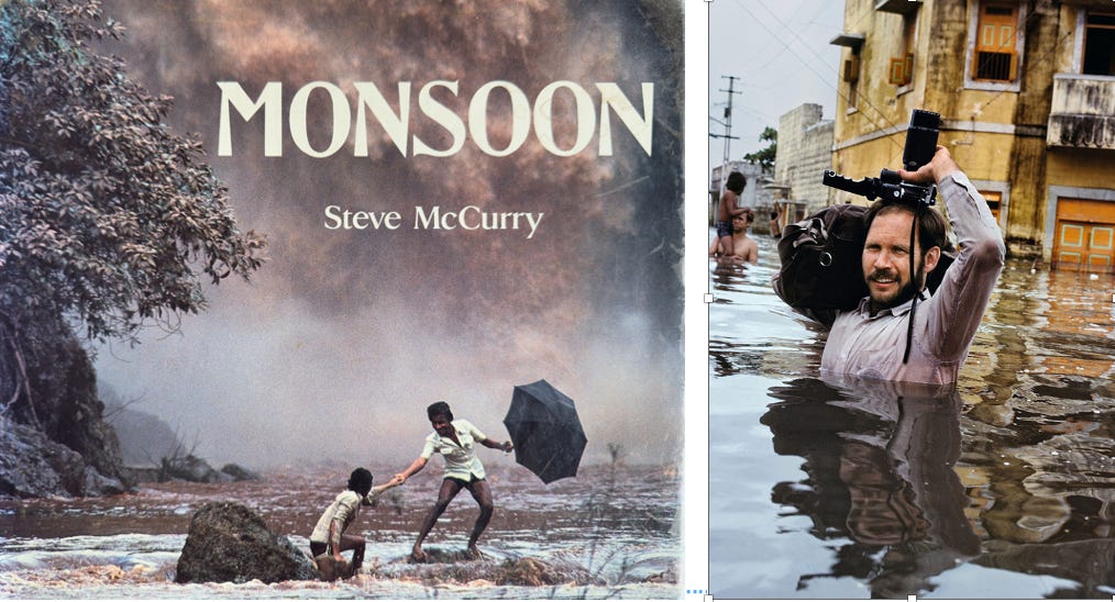 En 2018, Albert Padrol, fotógrafo y cofundador de la librería de viajes Altaïr, invitó a los Michaud al ciclo de conferencias y talleres Geografies, que organiza cada primavera en Ordino (Andorra) y que ese año estaba dedicado a la India (el de 2025, que tiene lugar del 12 a 17 de mayo, mientras escribo este texto, lo protagoniza Argentina). Albert Padrol fue quien me comunicó el fallecimiento de Michaud. Y también me pasó el enlace del documental en el que Roland, con 85 años, toma fotografías en la India bajo los aguaceros monzónicos. «Es mi séptimo monzón», explica con su cámara réflex de película fotográfica en ristre, a la que fue fiel hasta el final. Mousson, el último libro de los Michaud (Ed. Paulsen, publicado tras la muerte de Roland), reúne las imágenes de esos siete veranos lluviosos vividos por la pareja en la India. Un fotógrafo todavía más famoso, Steve McCurry, ya dedicó en su día una obra memorable a los monzones (Moonsoon, Thames&Hudson, 1988).