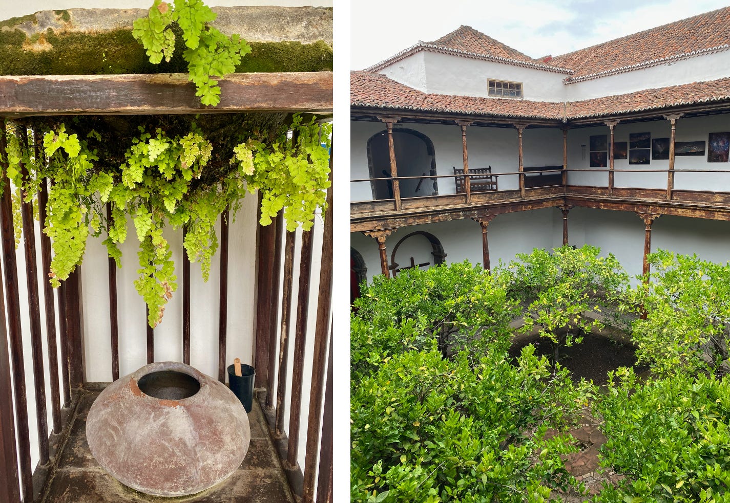Otra seña de identidad palmera es su arquitectura vernácula. Bloques de oscuro basalto aportan solidez a las aristas de los edificios y enmarcan sus puertas y ventanas, mientras la cal o la pintura revisten los muros. Algunas viviendas centenarias todavía conservan los balcones de madera labrada, que desde Canarias se propagaron a Cuba, Venezuela o Perú. Están construidos con tea, la médula del tronco del pino canario, tan densa y rica en resina que se hunde en el agua. El claustro del Museo Insular de Santa Cruz, ubicado en el antiguo convento de San Francisco, o el patio de la Casa Salazar, sede del centro cultural de la ciudad, muestran que con madera de tea pueden crearse pequeños oasis de paz.