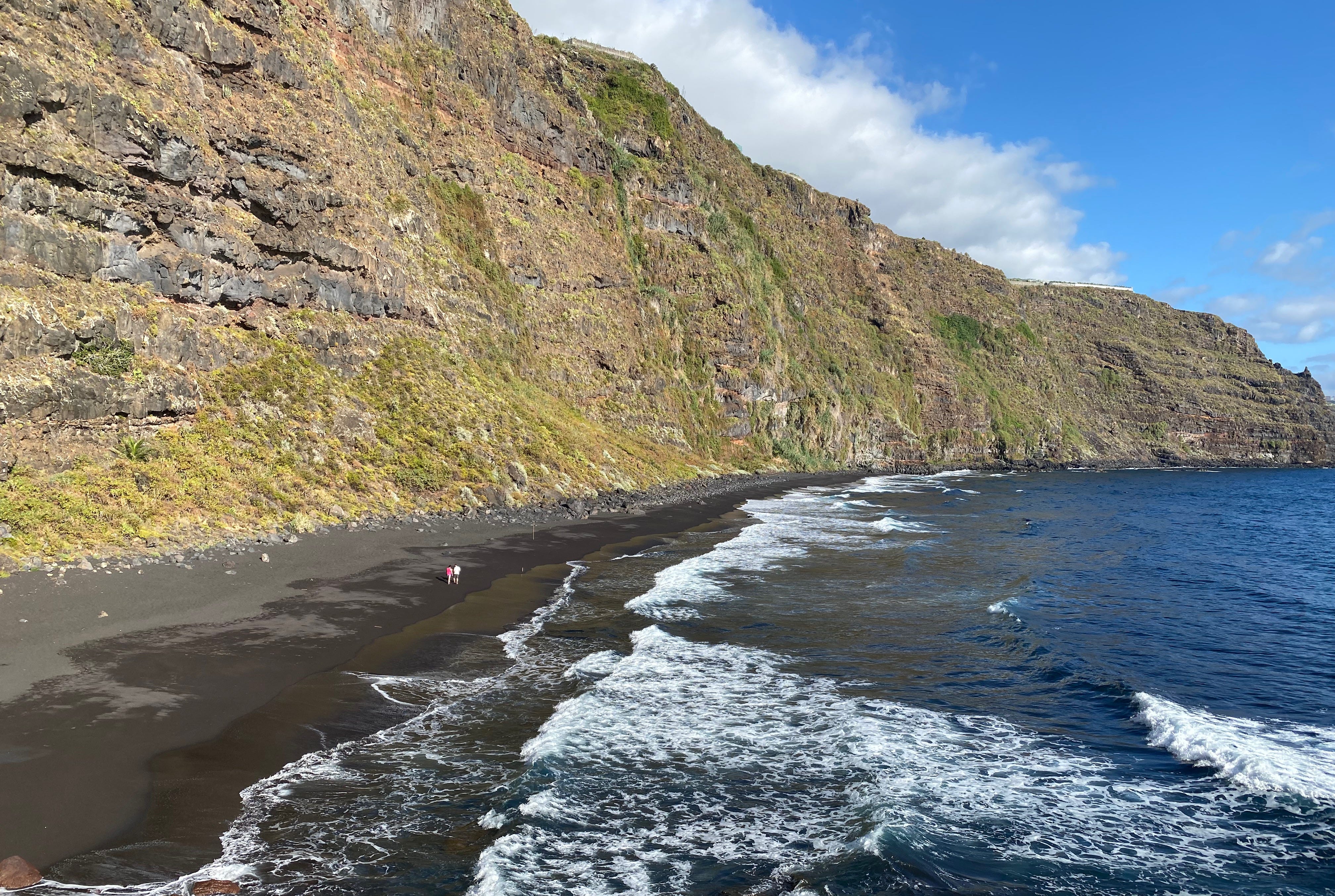 ¿El camino cuenta tanto como el destino? Eso parece en el espectacular sendero tallado en la cornisa que lleva a la salvaje playa de Nogales, 15 km al norte de Santa Cruz. Esta franja de finas arenas negras, guarnecida por una titánica pared y abierta al mar azul, se ensancha considerablemente durante la marea baja. Pasear por ella es un deleite, pero las corrientes exigen bañarse con atención.