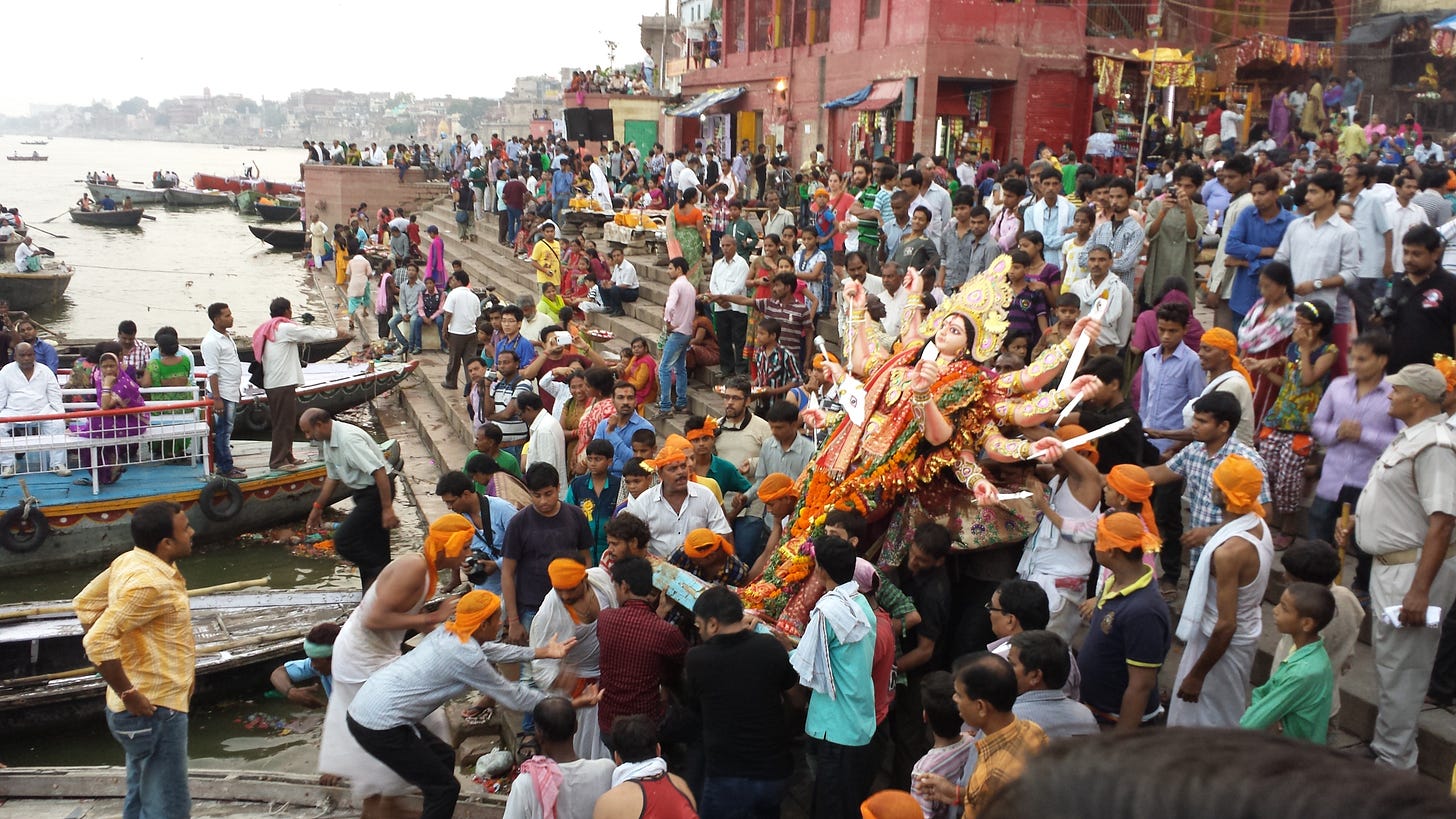 Conocí a Òscar Pujol hará unos treinta años, cuando él estudiaba sánscrito en la Universidad de Benarés. En aquellos tiempos yo era un admirador de los artículos que nos escribía para la revista de viajes Altaïr, en los que engarzaba la vida cotidiana, el arte y los rituales de la India en relatos plenos de sentido. Si entre los innumerables reportajes que llegué a editar o revisar en mi trabajo tuviese que elegir uno, ese sería «Festivales de Mysore». En él, Òscar narra los festejos del Dasara o Dussehra en dicha ciudad del sur de la India, que culminan con un enorme elefante transportando a la diosa Durga, con los colmillos enfundados en bronce y ornado con motivos florales. Durante las nueve veladas precedentes, decenas de miles de bombillas perfilan los arcos y las aristas del gran palacio de Mysore contra el fondo oscuro de la noche. El Dasara dura diez días y festeja la abundancia traída por las lluvias monzónicas gracias al combate erótico entre Durga, la diosa que encarna la fertilidad, y Majishá, el demonio responsable de la aridez, al que Durga acaba decapitando tras lanzar una carcajada espeluznante.