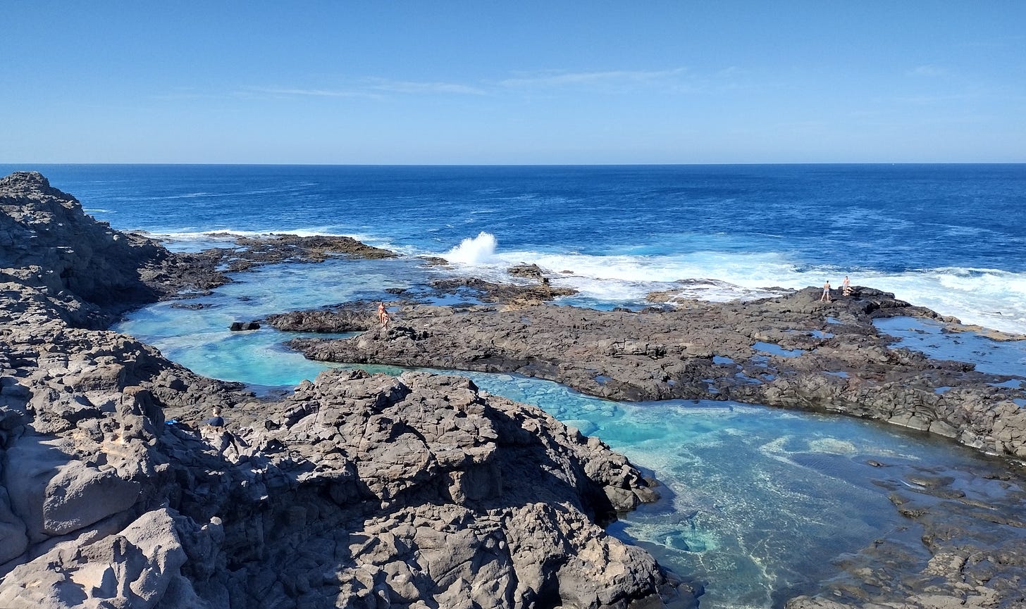 Otro aliciente de Playa Blanca son las Salinas del Janubio, las mayores de Canarias, un paisaje onírico durante la puesta de sol y muy frecuentado por las aves. Al norte se halla la inconfundible laguna salobre del Charco Verde, escenario de diversas películas, cuyo color se atribuye a un alga y al azufre que contienen sus aguas. No lejos del faro de Pechiguera están los Charcones. Estas fantasiosas pozas de basalto, al abrigo de las rompientes por bravo que esté el mar, eran un secreto que los lanzaroteños guardaban con celo antes de que existieran las redes sociales.