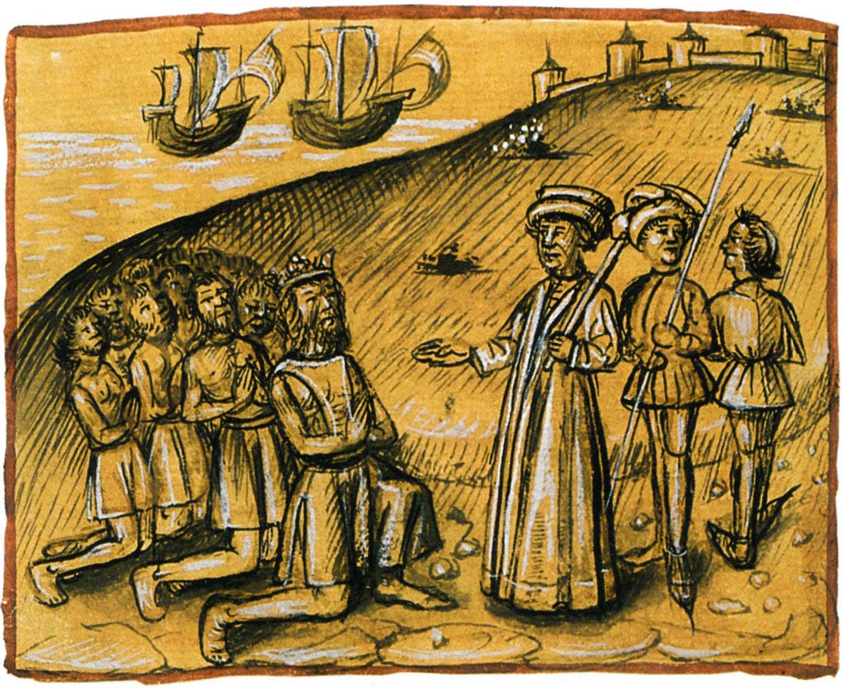 En el siglo XIV, el pueblo majo sufrió varias razias esclavistas de castellanos y aragoneses. A cambio de protección contra ellas, en 1402 los aventureros normandos Jean IV de Bethencourt y Gadifer de la Salle pactaron con el jefe Guadarfía construir un castillo al sur de Lanzarote, donde el cercano islote de Lobos les proveía de focas monje. Pero cuando un grupo de castellanos fondeados en La Graciosa asaltó a los aborígenes y estos reclamaron ayuda, el gobernador les tendió una celada. Guadarfía logró fugarse y guerreó contra los normandos, hasta que en 1404, diezmados sus hombres y con los graneros vacíos, se rindió y fue bautizado.