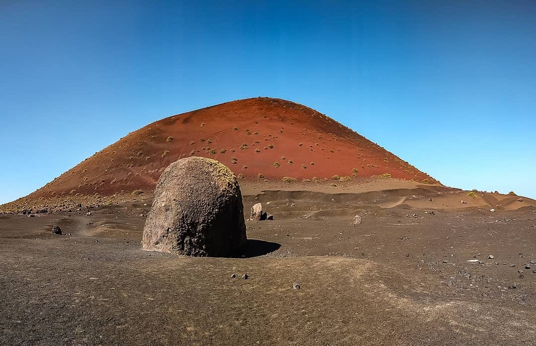 A fin de recuperar los valiosos terrenos agrícolas que sepultaron las cenizas volcánicas en la larga erupción de Timanfaya, los aldeanos excavaron en el rofe durante décadas hoyos de forma cónica hasta dar con el antiguo suelo fértil que había en la base. Esos grandes embudos, con una medialuna de piedras arriba que los resguarda aún más del viento, caracterizan el paisaje de La Geria y se contemplan a placer desde el volcán de Guardilama. En el fondo de cada uno de ellos crece una viña, mientras el manto de rofe, que puede alcanzar entre dos y tres metros de espesor, dificulta que se evapore la humedad del suelo. Los dromedarios traídos de África que ayudaron a transportar la grava, las rocas, las cosechas o el agua hoy pasean turistas en el Macizo del Fuego.
