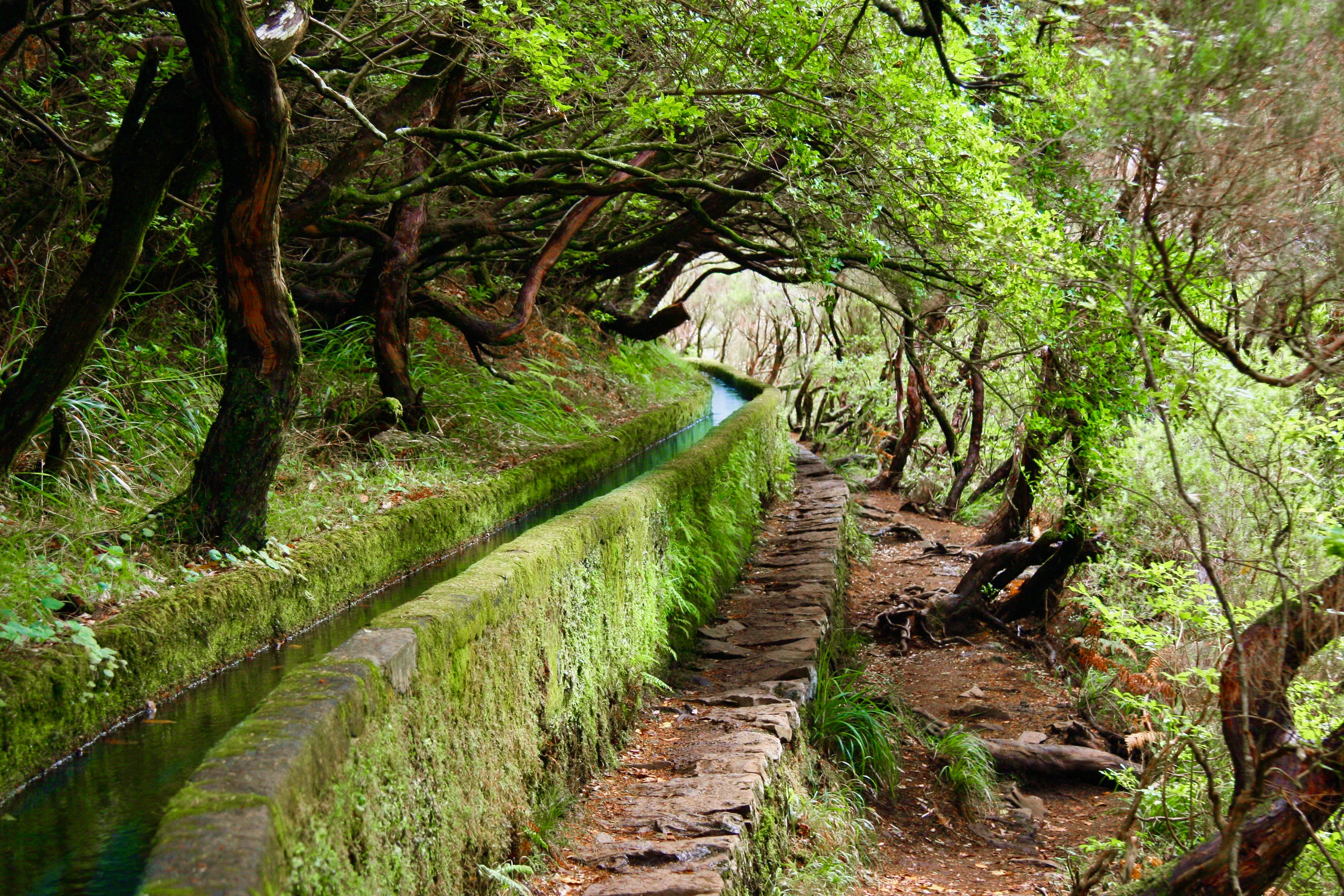 Para disfrutar de la naturaleza de Madeira, una cincuentena de levadas (acequias) ofrecen senderos de ensueño. Por esbeltas o intrincadas que parezcan las montañas, esta red de más de 2.000 km de canales, que incluye 40 km de túneles, se aventura por ellas en pos de las fuentes. Lo excepcional es que junto a la levada discurre siempre un camino casi tan horizontal como una curva de nivel (la acequia ha de fluir sin turbulencias), que permite repararla en caso de necesidad y donde el agua está siempre al alcance de la mano.